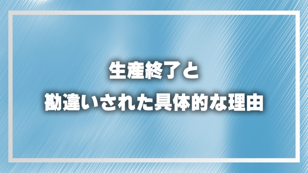 この発表により、長年のファンの間に広まっていた「生産終了なぜ?」という疑問に対する答えが明確になったのです。実際には品質向上のための改良作業が行われており、決して生産が中止されたわけではありませんでした。