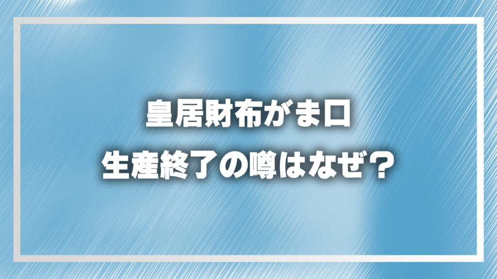 この記事では、皇居財布がま口の生産終了に関する真実と、現在の入手方法について詳しく解説していきます。