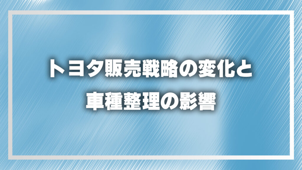 2020年から始まったトヨタ販売店の統合整理と連動して、車種の整理・削減も積極的に推進されていました。この戦略により、需要が重複している車種は統合や販売終了の対象となりました。