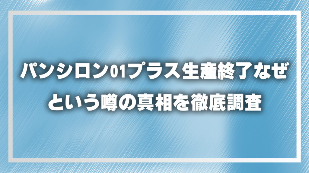 パンシロン01プラス生産終了なぜという噂の真相を徹底調査