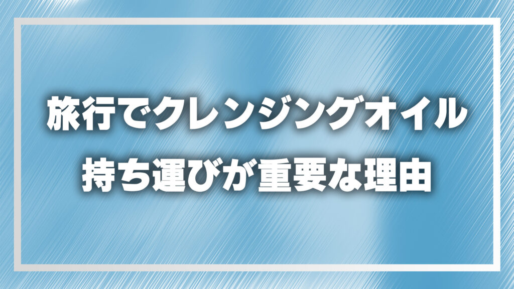 旅行先では気候の変化や環境の違いで肌が敏感になりがちです。そんなときこそ、普段から使い慣れたクレンジングオイルの出番!新しい製品を試すリスクを避けて、肌トラブルを未然に防げます。