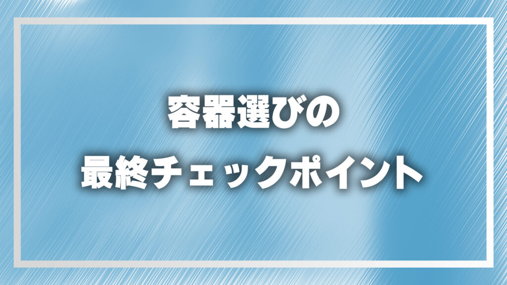 | 容器タイプ | 密閉性 | 重量 | 価格 | おすすめ度 |