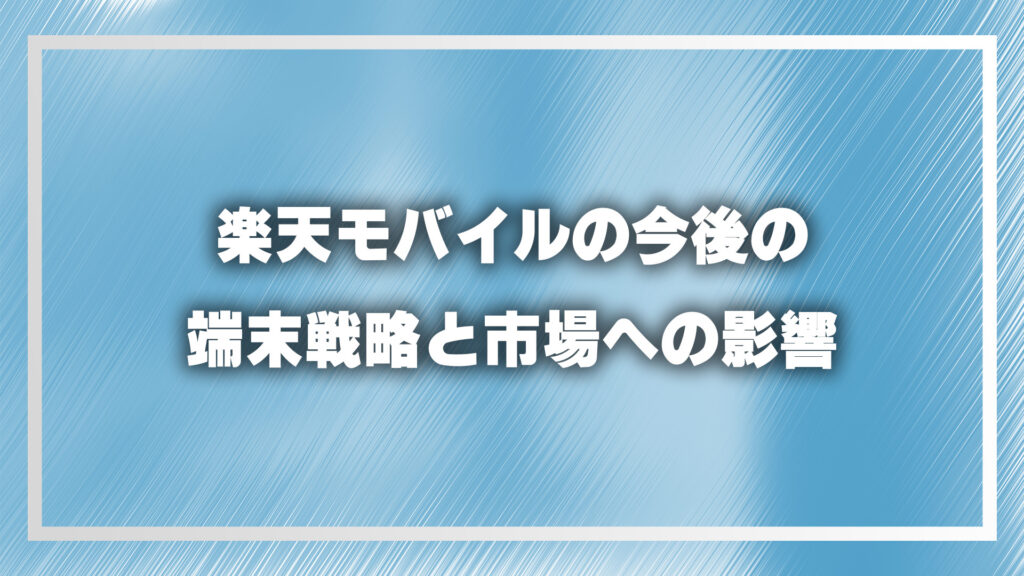 楽天モバイルのオリジナル端末撤退は、格安SIM市場全体に以下の影響を与えています:
