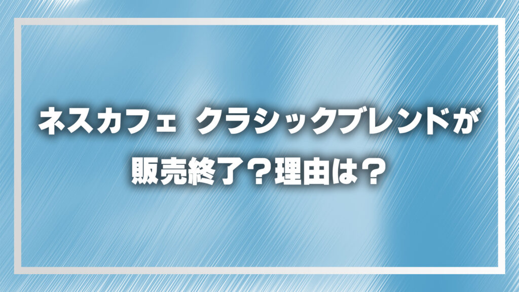 - ネスカフェ クラシックブレンドは本当に販売終了したのか?