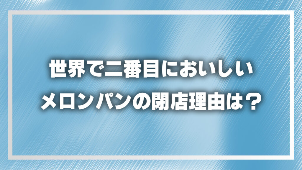 - 「世界で二番目においしいメロンパン」が閉店した理由と背景