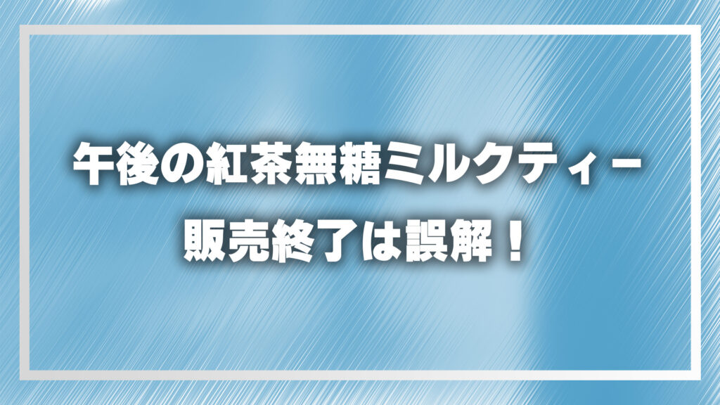 - 午後の紅茶無糖ミルクティーの販売終了説が誤解である理由