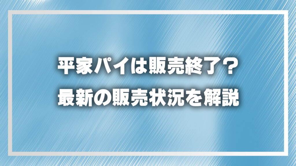 - 平家パイの最新販売状況と販売終了の噂の真相