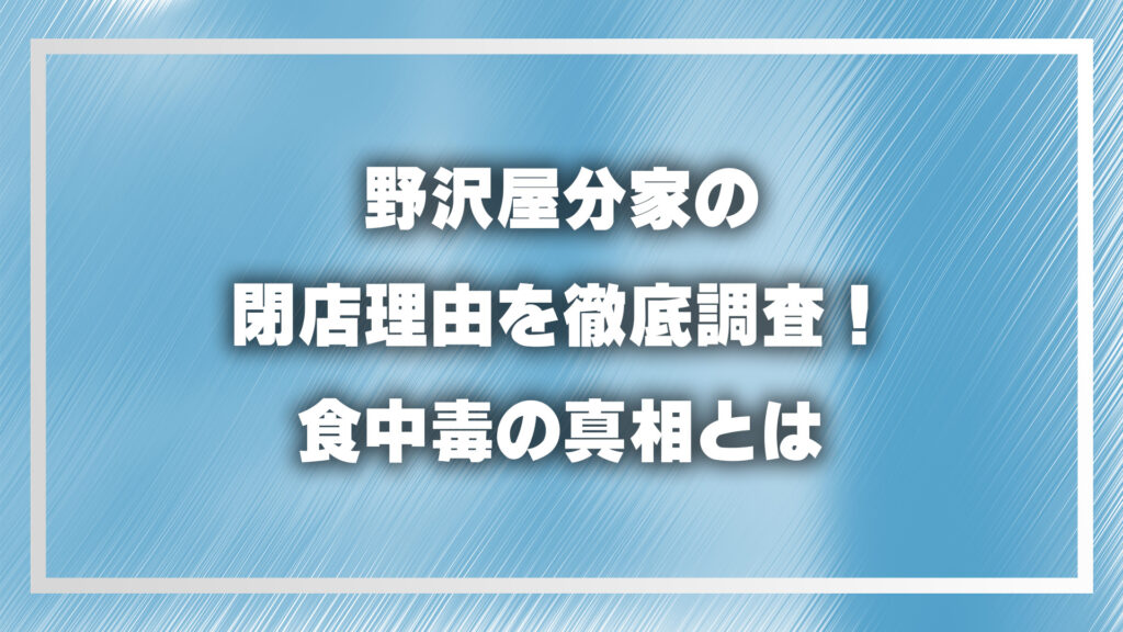 野沢屋分家の閉店理由を徹底調査!食中毒の真相とは