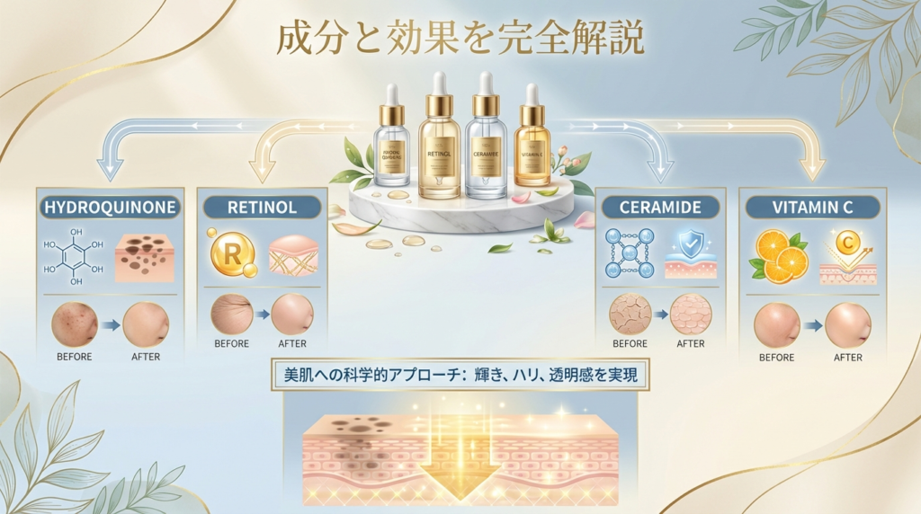 ・シミへの効果と作用メカニズム ・安全な使用方法と注意すべき副作用 ・医療機関処方と市販品の違い