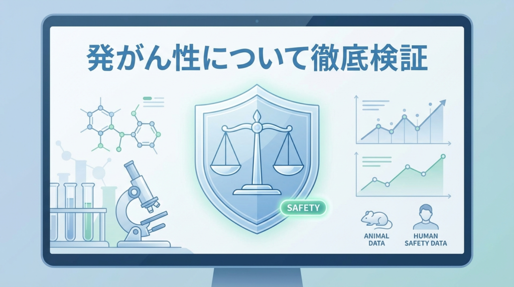 6.0%という高濃度配合で注目を集めています。しかし「発がん性があるのでは」という情報を目にして、使用をためらっている方も多いのではないでしょうか。
